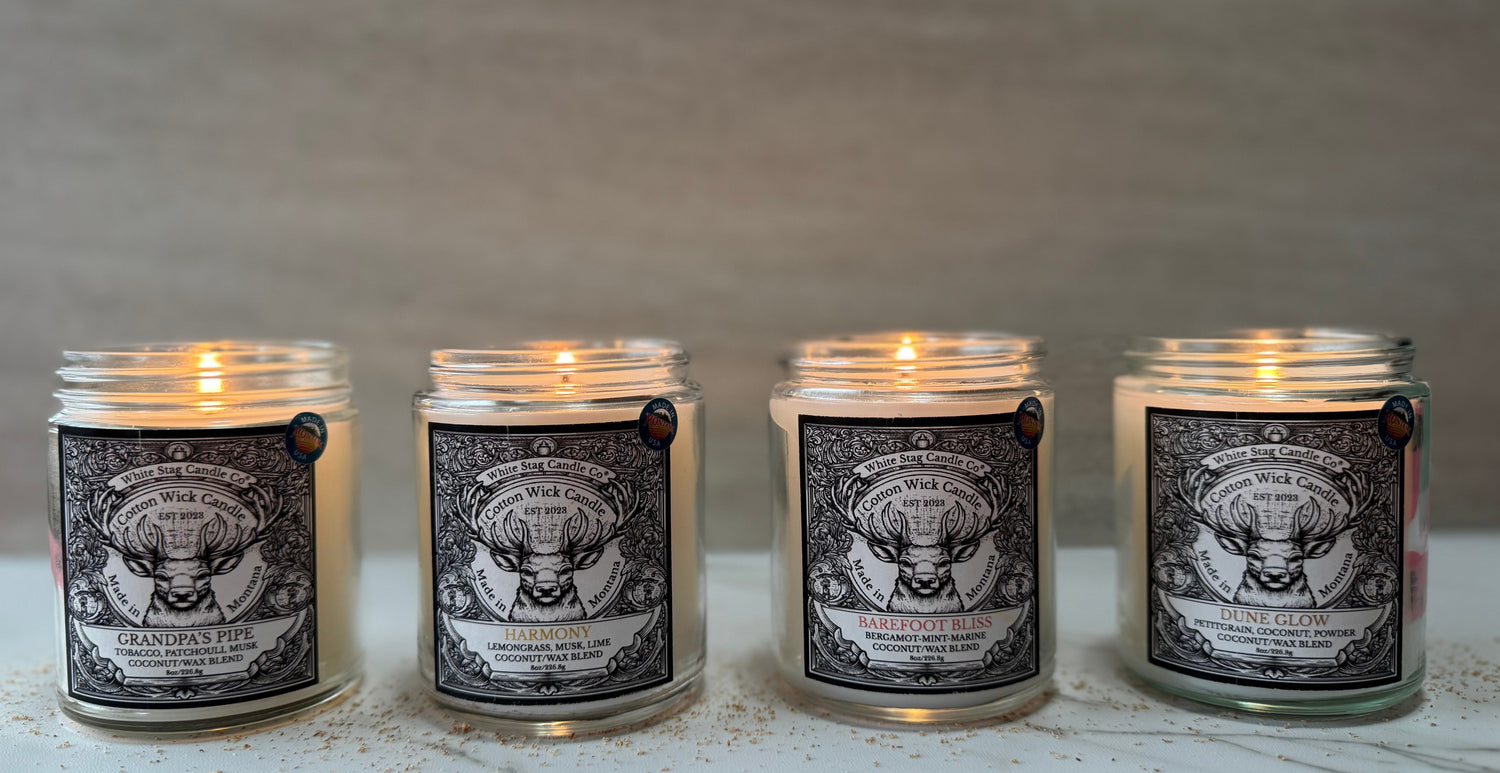 At White Stag Candle co.. we creat candles that bring warmth and intention into everday life. Hand-poured in small batches with cotton wicks.